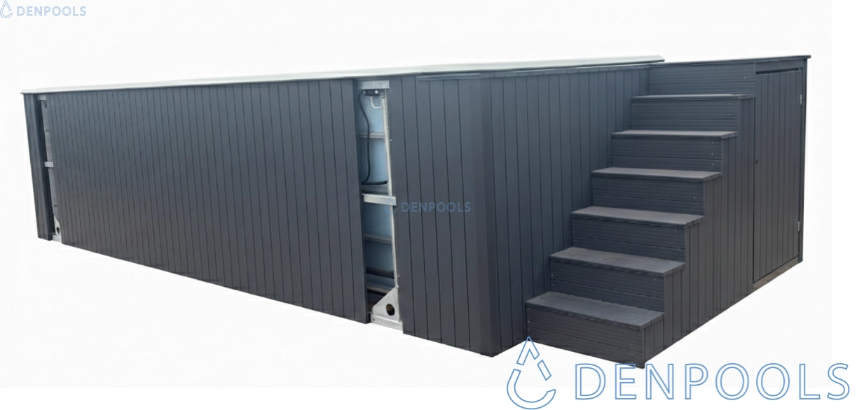 La piscina viene consegnata al cliente completamente pronta all'uso. Tutti i lati sono rivestiti con pannelli in acciaio zincato da 0,5 mm in colore antracite.
