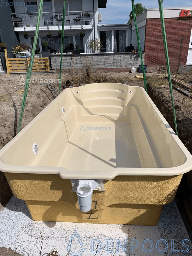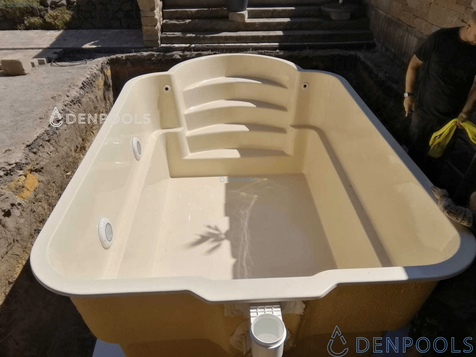 piscina rettangolare in vetroresina di alta qualità con la scala che può essere utilizzata anche come posti da sedere