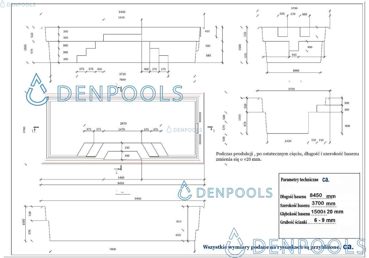 Dimensioni: 8,45 m * 3,7 m * 1,5 m
